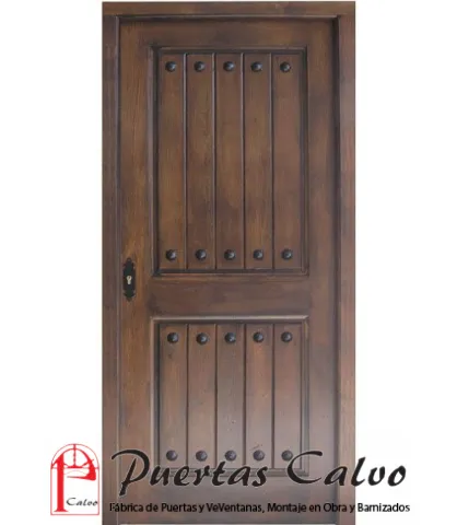 La puerta consta de dos tableros centrales ranurados, dos largeros y tres peinazos horizontales unidos a los largeros mediante espigas encoladas y aseguradas con taco de madera colado, con lo que podra disfrutar de su puerta toda la vida